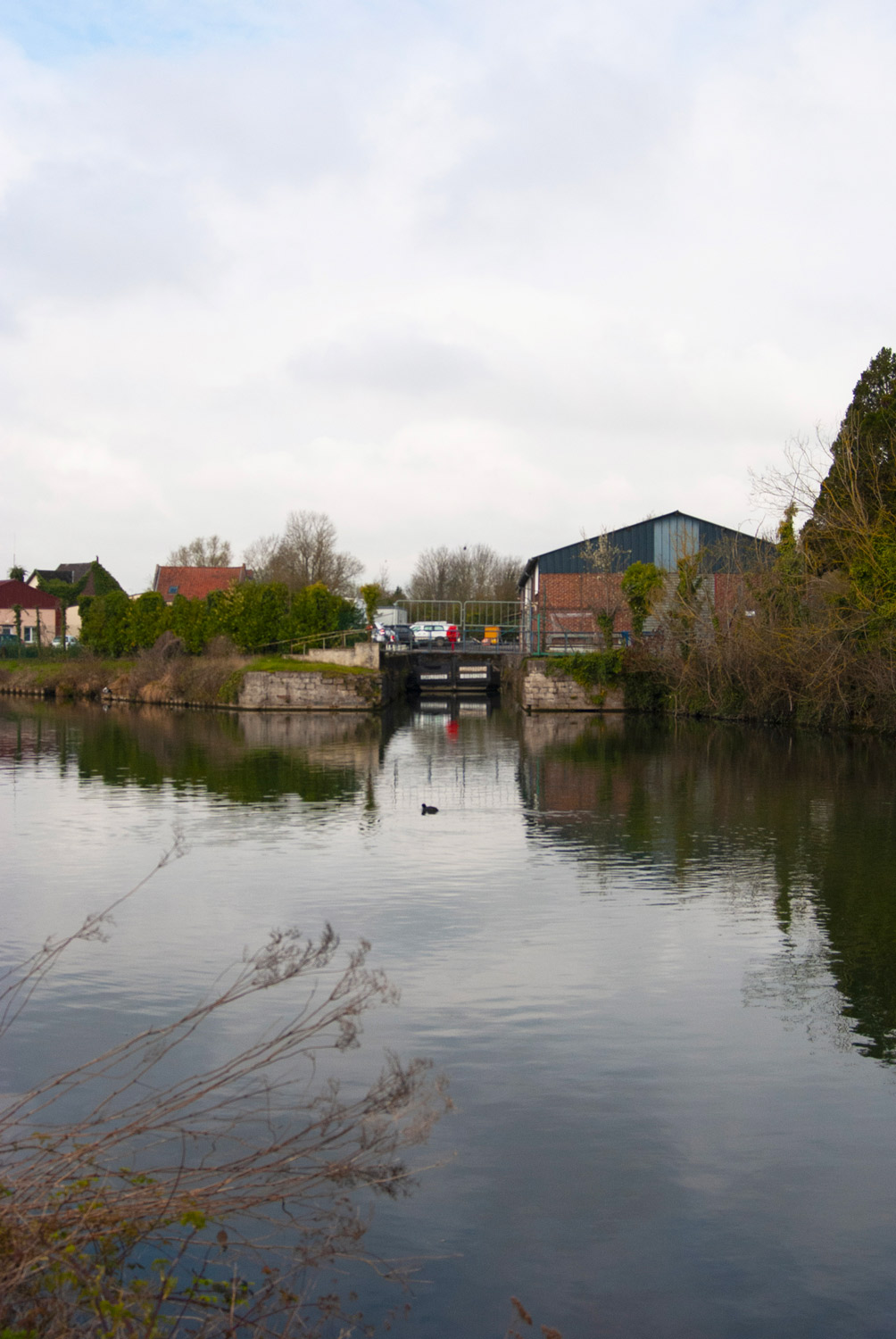 Il canale della Escaut attraversa la città di Cambrai in due parti. Lungo tutto il suo percorso si trovano abitazioni, vegetazione e fabbriche.