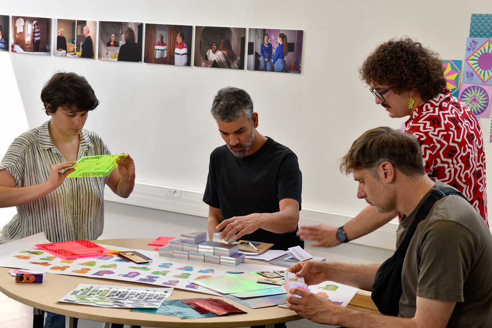 Sono queer & pacchiano est un jeu de cartes traditionnel sicilien (40 cartes) où les gravures traditionnelles sont remplacées par des portraits de drag queens. Les différentes familles sont incarnées par les couleurs. Les livrets contiennent les règles des jeux et mon article de troisième année de DNA, faisant un rapprochement entre les esthétiques traditionnelles siciliennes e t les cultures queer révolutionnaires. Leur couverture sont gaufrées à partir d’une macule gravée au laser. Le tout est dessiné et gravé à partir de motifs triangulaires, prélevés des carreti siciliani et rappelant le triangle rose.